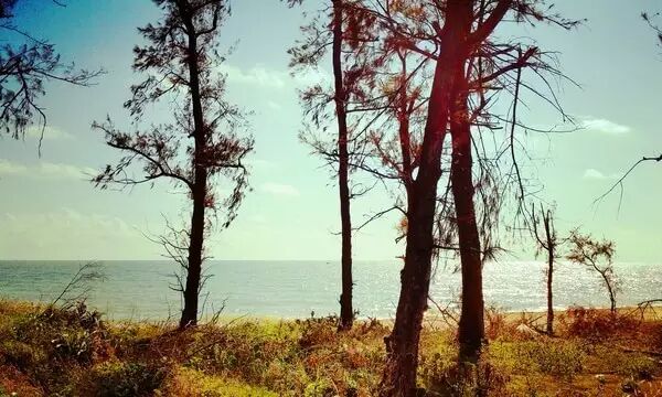 滴水丹屏的海滩景色非凡,靠近水边的沙子很细腻,中间铺满了碎珊瑚,再往岸边就是松树林。在这里游泳的人很多,在海里随着海浪的涌动时而跳跃,时而漂浮。