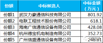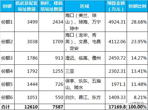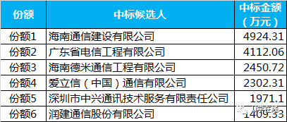 中国铁塔股份有限公司海南省分公司2017-2019年铁塔代维服务项目和2017-2019年机房及配套代维服务项目开标,两项目预算合计19619.46万元,海南通建、广东电信工程、德米、爱立信、润建等单位中标。