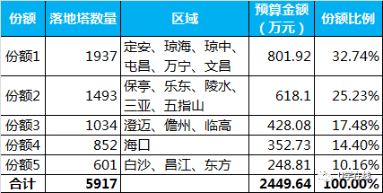 本项目采购预算金额为2449.64万元,划分为5个份额,具体详见下表: