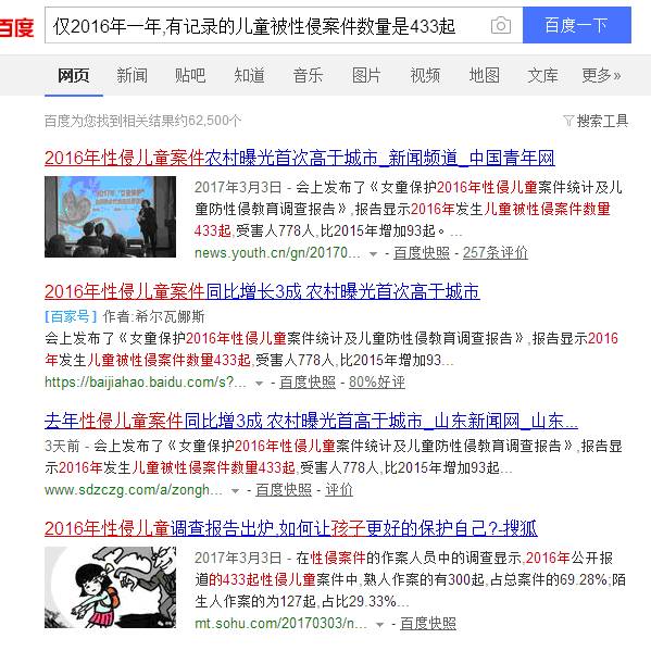 仅2016年一年,有记录的儿童被案件数量是433起,受害人778人,比2015年增加93起。而儿童案的官方认定的隐案率是1:7。也就是说,1起被揭露的儿童案背后,必有7起不为人知。