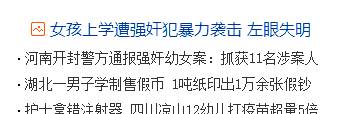 湖南攸县男教师猥亵多名女童;云南彝良县农村教师张某猥亵7名女童被刑拘;湖南永顺某乡镇学校校长猥亵6名女童被提起公诉;海南万宁小学校长带女生开房;四川小学教师魏某多次对11名儿童实施猥亵被判死刑;江苏镇江12岁女生被继父致孕……