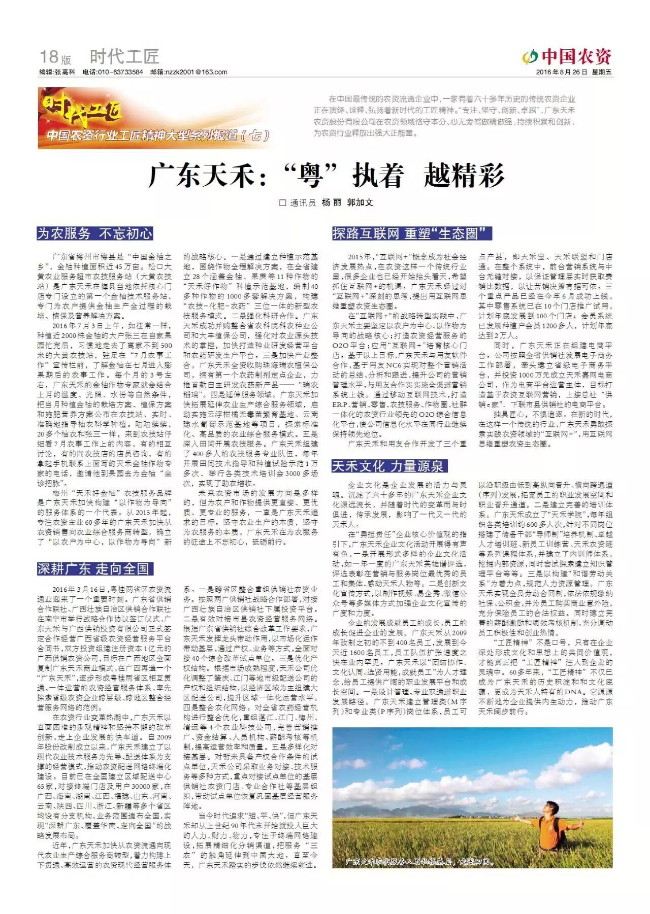 首页 | 美容百科 | 行业 | 时代工匠——广东天禾:“粤”执着,越精彩,不忘初心,砥砺前行! 行业 | 时代工匠——广东天禾:“粤”执着,越精彩,不忘初心,砥砺前行! 2023-04-19 23:50:29 在中国最传统的农资流通企业中,一家有着六十多年历史的传统农资企业正在演绎、诠释、弘扬着新时代的工匠精神。“专注、坚守、创新、卓越”,广东天禾农资股份有限公司在农资领域恪守本分、心无旁骛做精做强,持续积累和创新,为农资行业释放出强大正能量。为农服务 不忘初心 2016年7月3日上午,如往常一样,种植近2000株金柚的大户张三在自家果园忙完后,习惯地走去了离家不到500米的大黄农技站,驻足在“7月农事工作”宣传栏前,了解金柚在七月进入膨果期后的农事工作。每个月的3号左右,广东天禾的金柚作物专家就会结合上月的温度、光照、水份等自然条件,把当月种植金柚的栽培方案、植保方案和施肥营养方案公布在农技站,实时、准确地指导柚农科学种植。陆陆续续,20多个柚农和张三一样,来到农技站仔细看7月农事工作上的内容,有的相互讨论,有的向农技店的店员咨询,有的拿起手机联系上面写的天禾金柚作物专家的电话,邀请他到果园去为金柚“坐诊把脉”。未来农资市场的发展方向是多样的,但为农户和作物提供更直接、更优质、更专业的服务,一直是广东天禾追求的目标。坚守农业生产的本质,坚守为农服务的本质,广东天禾在为农服务的征途上不忘初心,砥砺前行。深耕广东 走向全国 自2009年股份改制成立以来,广东天禾建立了以现代农业技术服务为先导、配送体系为支撑的经营模式,推动农资配送网络终端化建设。目前已在全国建立区域配送中心65家,对接终端门店及用户30000家,在广西、海南、湖南、江西、福建、山东、河南、云南、陕西、四川、浙江、新疆等多个省区均设有分支机构,业务范围遍布全国,实现“深耕广东、覆盖华南、走向全国”的战略发展布局。探路互联网 重塑“生态圈” 2015年,“互联网+”概念成为社会经济发展热点,在农资这样一个传统行业里,很多企业也已经开始抬头看天,希望抓住互联网+的机遇。广东天禾经过对“互联网+”深刻的思考,提出用互联网思维重塑农资生态圈。天禾文化 力量源泉 在“勇担责任”企业核心价值观的指引下,广东天禾企业文化活动开展得有声有色。“工匠精神”不是口号,只有在企业深处形成文化和思想上的共同价值观,才能真正把“工匠精神”注入到企业的灵魂中。60多年来,“工匠精神”不仅已成为广东天禾的历史积淀和和文化底蕴,更成为天禾人特有的DNA。它源源不断地为企业提供内生动力,推动广东天禾阔步前行。详情请关注《中国农资》2016年8月26日18版责任编辑:liting 中国农资传媒出品,如有转载请联系管理员!扫码进入QQ群,参与每日话题讨论!