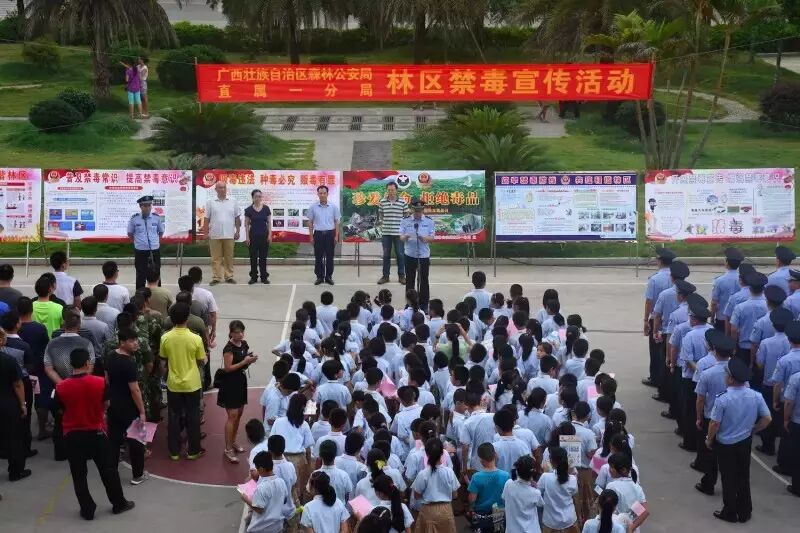 参加林区禁毒宣传活动的有直属一分局机关及基层一线执勤民警、中国科学院热林中心各基层单位代表、当地群众以及临近学校百名小学生。