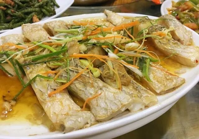 运气好好,碰上老板打到大鱼,分到一份肉质细嫩鲜香的清蒸鱼腩。