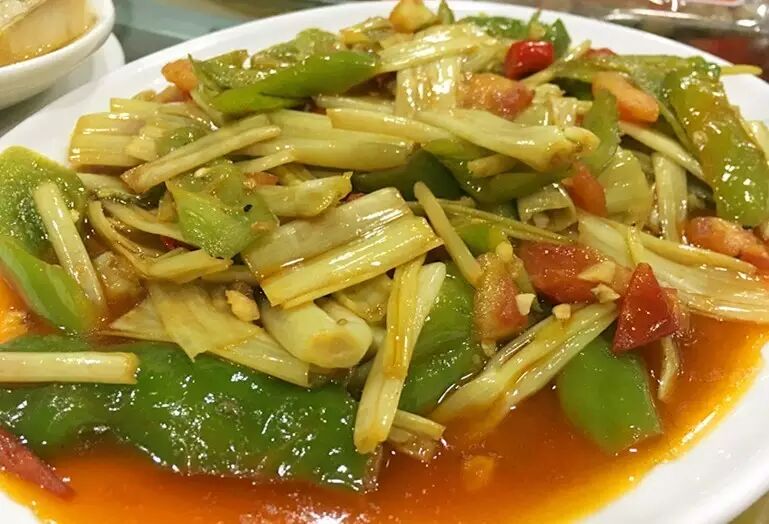 辣椒炒水空心菜梗,也是当地原生态美食。