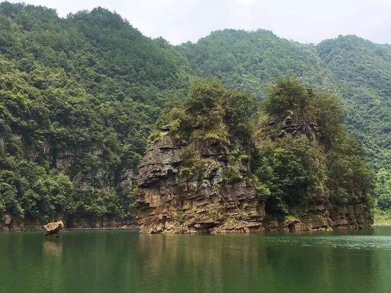 远看就像一只小猪,近看却变成了一条南蛇的头露出水面,游船到这里就开始回程了。