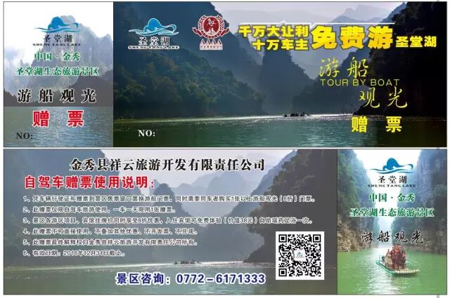 另外:圣堂湖景区2016年全年开展“千万赠票、十万车主免费游圣堂湖”活动,真情回馈广大自驾车主。