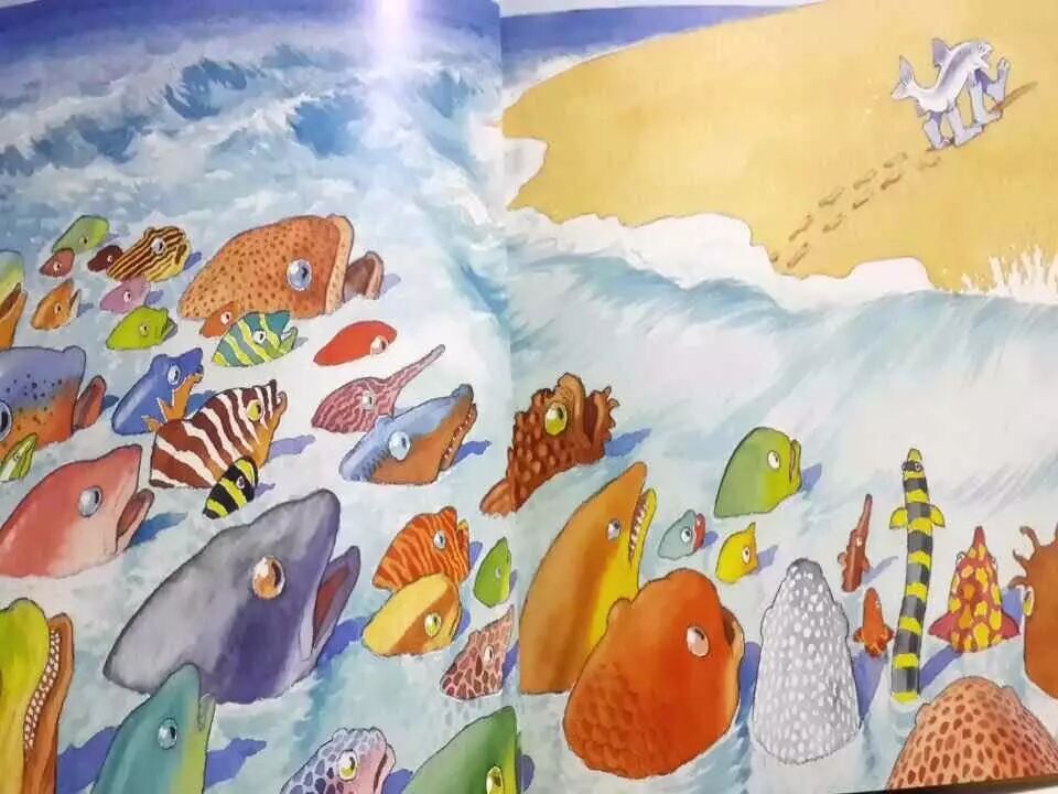 我们可以引导孩子们进行比较,你是怎么看待聪明鱼的不可思议和群鱼的不可思议。各种鱼的不可思议是一样的吗,为什么呢?当你穿上鞋子,在陆地行走的时候,你会怎么做呢?你会像聪明鱼一样去告诉鱼群吗,为什么呢?还有,从鱼类到爬行动物、原始鸟类、哺乳类、人类这个过程当中,你觉得聪明鱼和群鱼谁更重要,为什么?