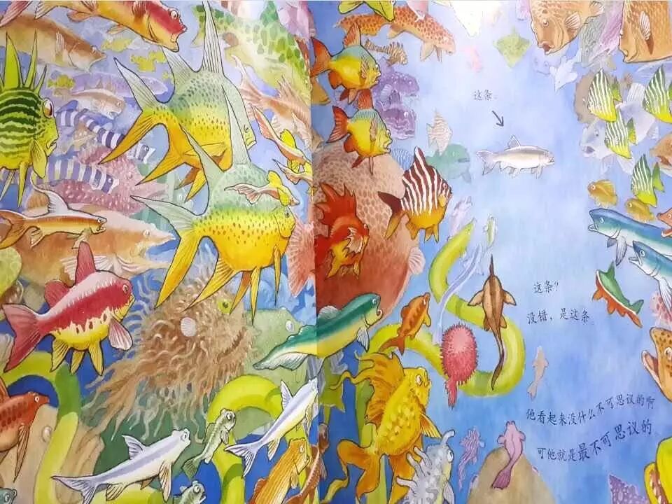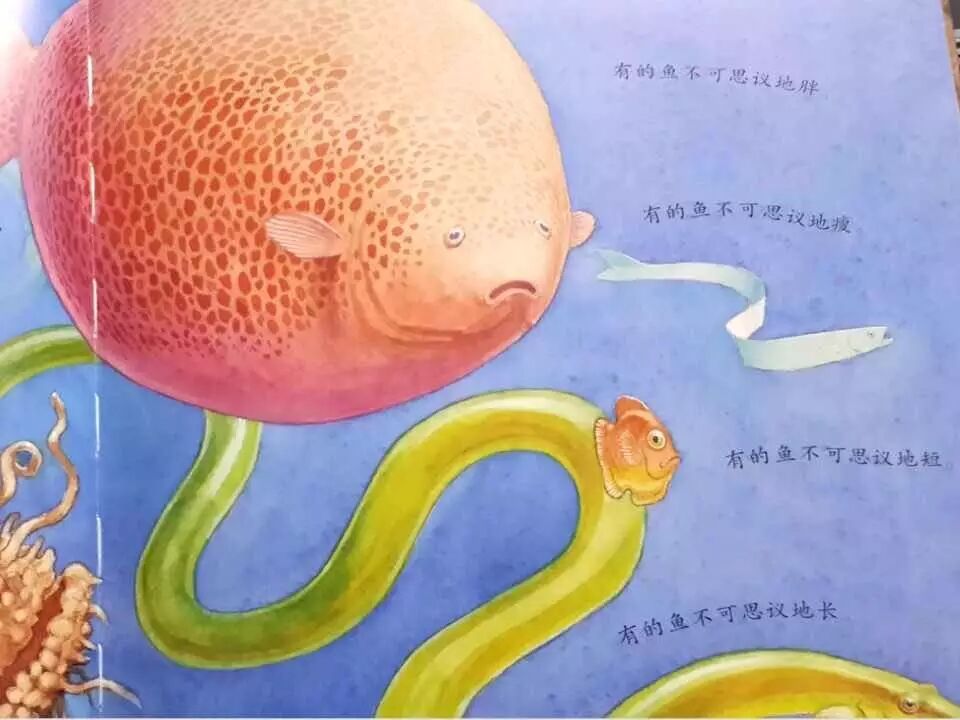 不管你胖瘦长短,可爱还是恐怖,普通还是奇特,你都是不可思议的一份子。这个观念老师一定要传递给孩子们,群鱼有群鱼的魅力,聪明鱼有聪明鱼的气质,这不是非此即彼的、简单粗暴的黑白世界,而是充满着神奇、彰显着个性的和谐世界。所以,在作者的眼里,他们都是不可思议的。