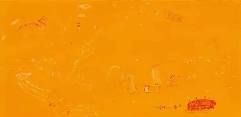 我们看到扉页橙色的背景上画了好多的东西,填满了整个画面的是什么呢?乍一眼看有些杂,但是不乱,只是看得有些眼花。心理学有经典的画图测试,所以我们别觉得画面远就跳过去,我们也来作为心理学家,透过画面来分析一下孩子的心理。橙色是暖色,但是作为背景色,非常的明亮刺眼,说明了画画的孩子,心里不平静,想吸引别人的注意。画面很丰富,有月亮、星星、火箭、飞机、火车、房子、路灯,还有各种的动物。怎么好像还有什么画倒了呢?是谁呢?是爸爸和一艘船,爸爸刚准备从床上起来。我们发现:爸爸起床,月牙,路灯,还有猫狗,这幅画应该就是罗密欧在爸爸出门后画的,他想和爸爸在一起的渴望太强烈了,于是他就选择了亮丽的橙黄色。