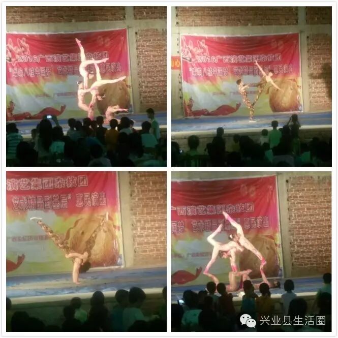 ▲10月28日晚,广西杂技团走进兴业县社塘村,开展“唱响八桂中国梦 艺术精品到基层”演出活动。该社塘村村民们欢聚在操场上,观看了精彩的杂技演出!在演出中,杂技演员们为社塘村村民们带来了单人、双人、多人柔术、桌上溜冰等一个个精彩的杂技节目。演员们干净利索的动作、柔软的身姿、欢快的节奏,给村民们带来了惊喜和欢乐,操场上传来一阵阵热烈的掌声。