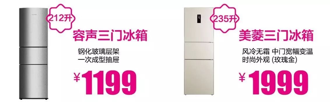 购买彩电、冰箱、洗衣机、厨卫产品,满1000元返100元通用券。