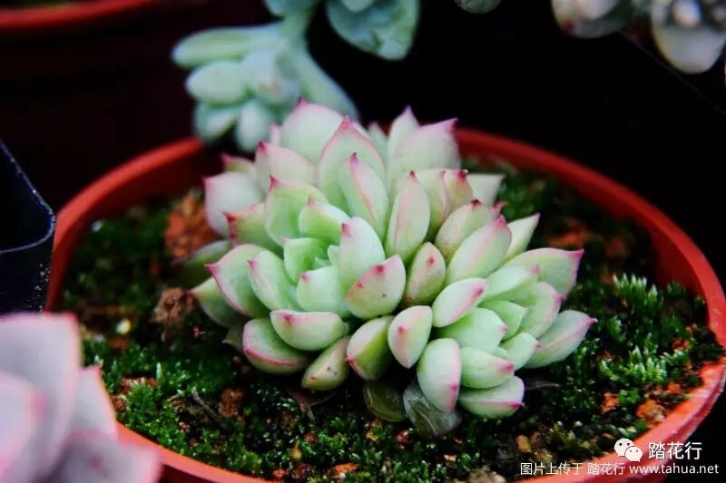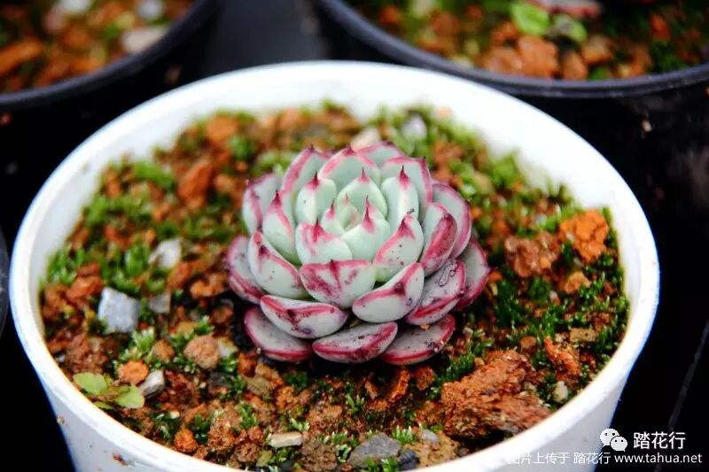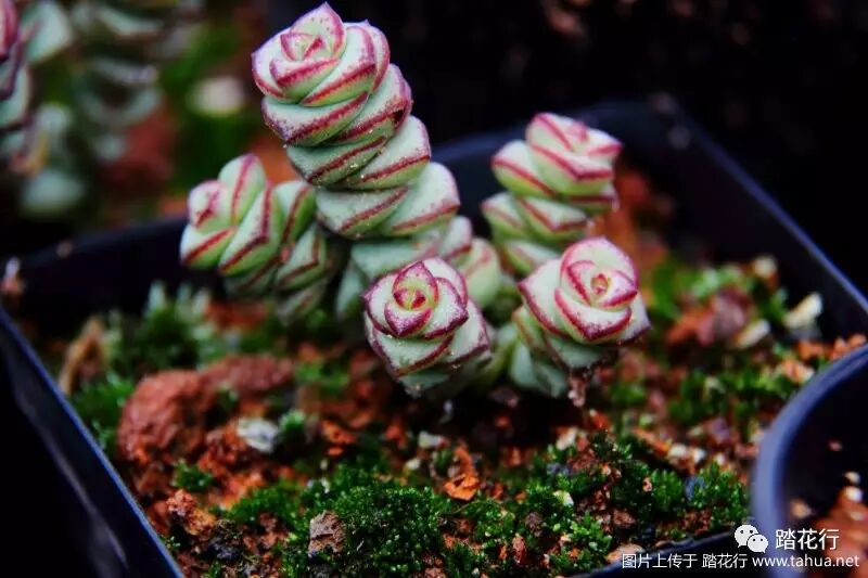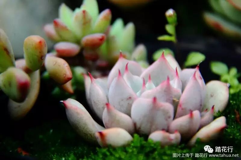 5、种好后的肉肉,如果种的时候,以及过后几天天气都太干的话,可以每天或者隔几天喷次水,只需少量喷湿表面的土就行了。这样是为了让苔藓有个潮湿的环境,也能使得肉肉根部附近的土有点潮湿,利于发根。