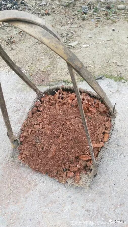 大颗粒的可以垫在盆底,实在太大的,继续踩,踩碎了来用。最细的那些,留一些出来备用,后面会用到。