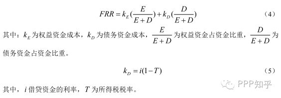 通过CAPM法求得权益资金基准收益率后,结合项目权益资金与债务资金的比例,借助WACC法可计算项目投资基准收益率FRR,公式如下所示: