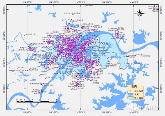 ②各行政区的局地中心:江汉的商务区-火车站、江岸的东后湖-金桥大道、武昌的中北路、洪山的南湖-光谷南等多个局部中心并存,并逐级向外衰减。