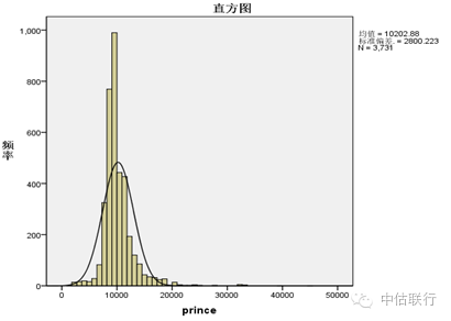 图3 武汉中心城区存量住宅2016年7月基准房价频率分布图