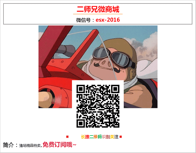 扫一扫图中的二维码就能关注二师兄微商城哟!