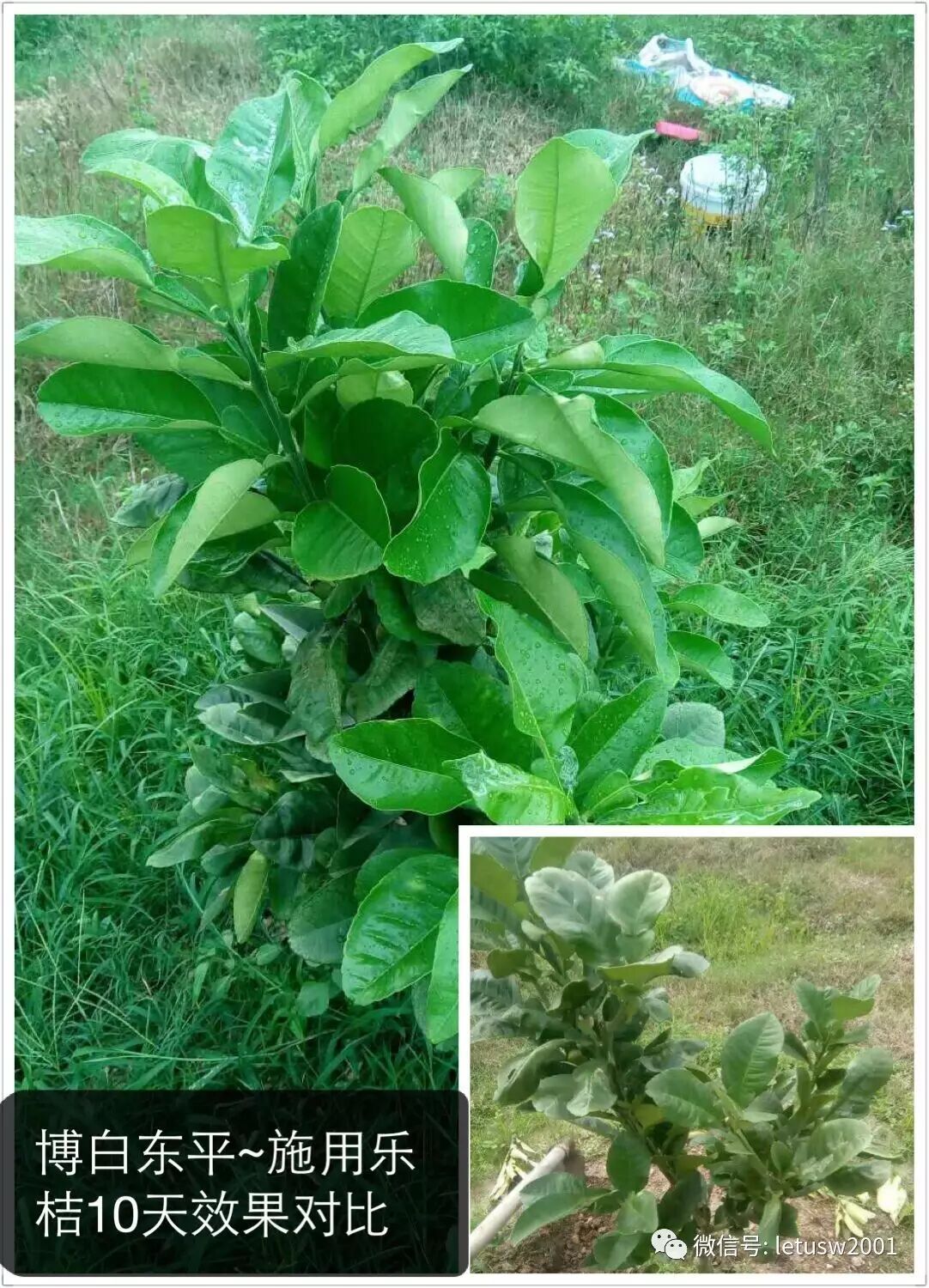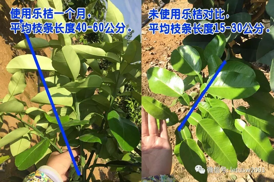 ■“乐桔”含有高含量有机钾及乐土科技微生物激活剂。有利提高光合作用,提高光合产物糖从植物叶片向果实的转化速率,提高柑橘含糖量,提升作物品质口感。