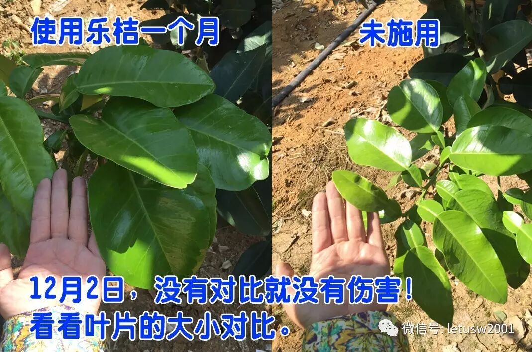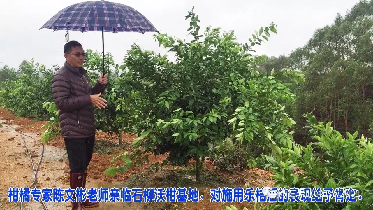 经过施用“乐桔”,7月份矮小、“秀气”的沃柑树在4个月的时间里突飞猛进长到株高约为1.5米,叶片光滑厚实,1000多亩均还未发现溃疡病的踪迹。11月24日广西柑橘实战专家陈文彬老师亲临果园,实地考察了种植效果,“乐桔”的表现得到了陈老师的肯定,有机无机配比得当,添加八大中微量元素、有益生物菌完美结合造就了全营养型的柑橘专用肥——乐桔。