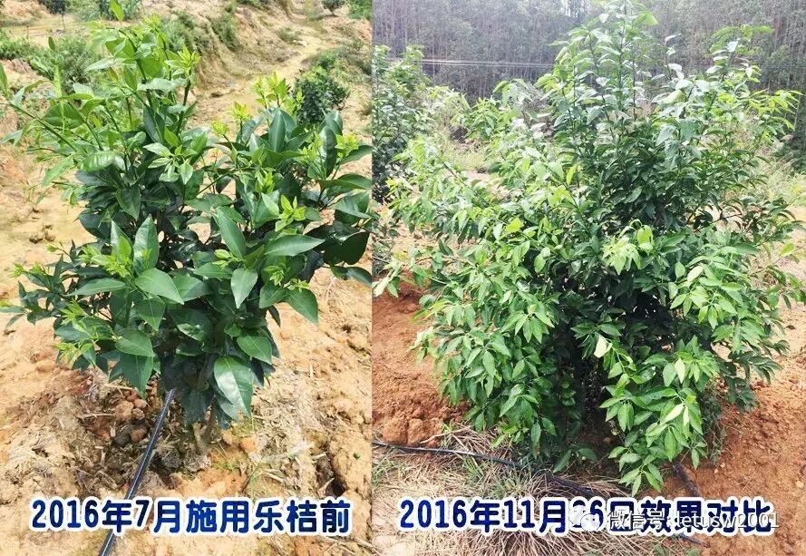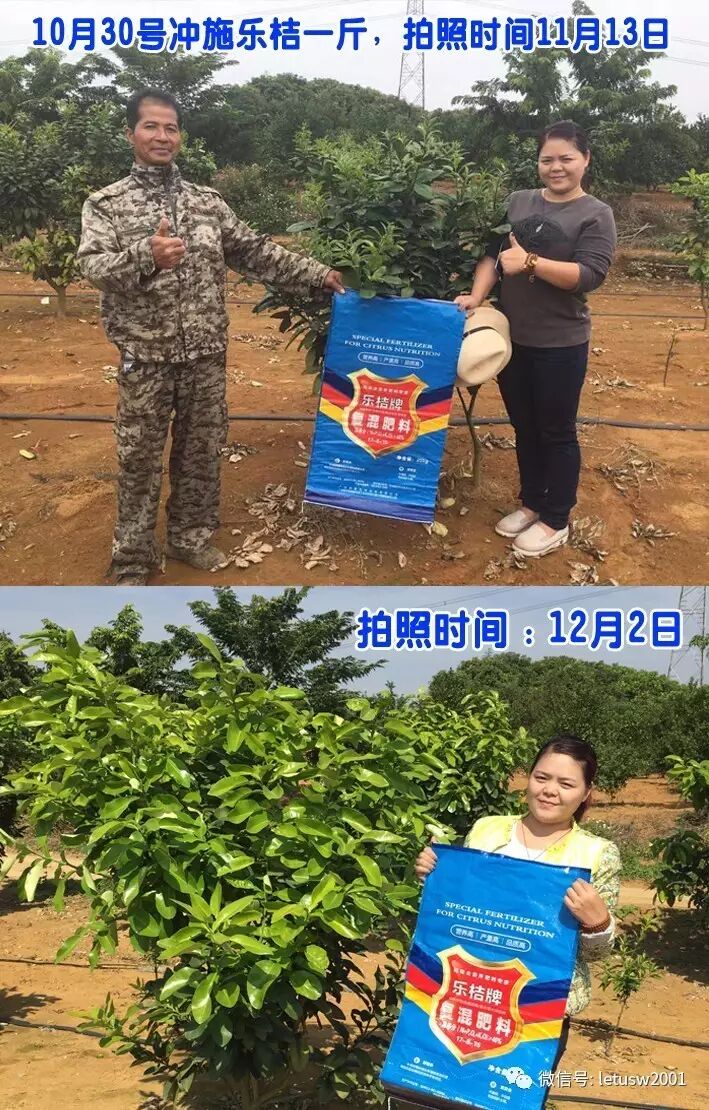 10月30日黄哥收到示范肥便即刻试用,1斤乐桔兑一桶水根部冲施了30棵。11月13日,时隔13日再去看的时候已经是另外一幅景象。