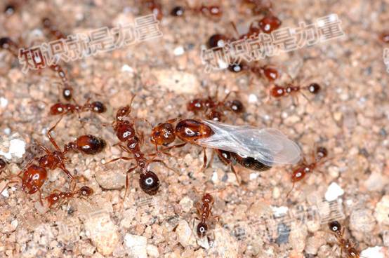 红火蚁的工蚁和有翅的生殖蚁(刘彦鸣摄影)