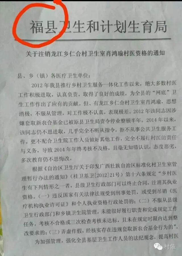 村医与当地卫生政策部门是各执一词,村医被注销村医资格
