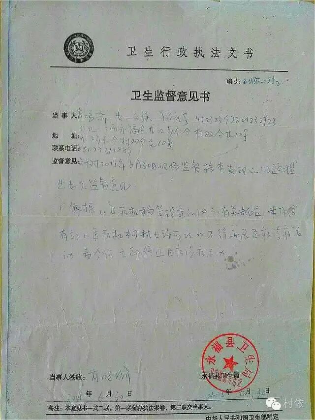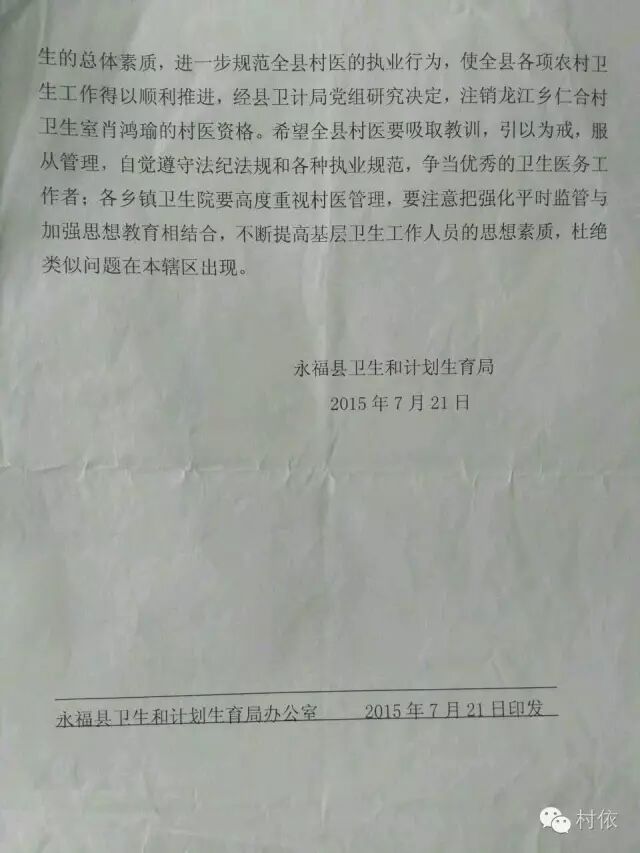(此处不知道是当地卫计局疏忽还是什么原因,永福县的“永”字被漏掉了,该正式文件更没有发文字号、印章等,看起来总觉得怪怪的)