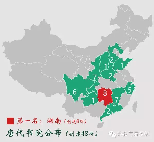 书院发端于唐,那我们就从唐代开始,透过“大数据”来看看历史上的书院分布。唐朝有记载的书院共有57所,其中有48所可以确定院址。这48所书院,散布在如今12个省区: