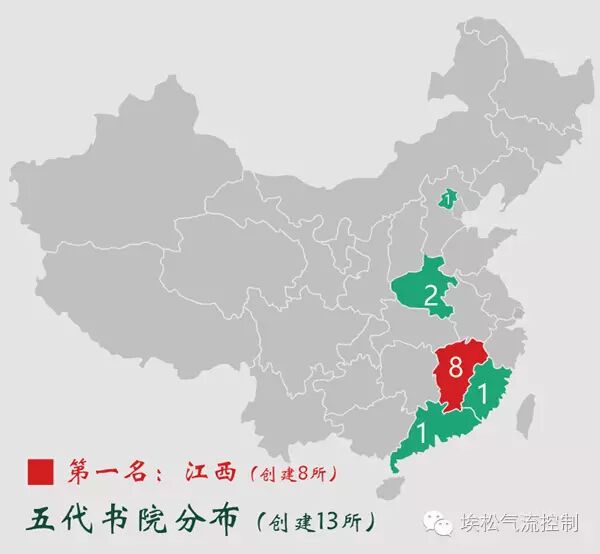 五代官方书院无法统计,民间书院共有13所。其地域分布,基本仍在唐代书院的分布范围内:
