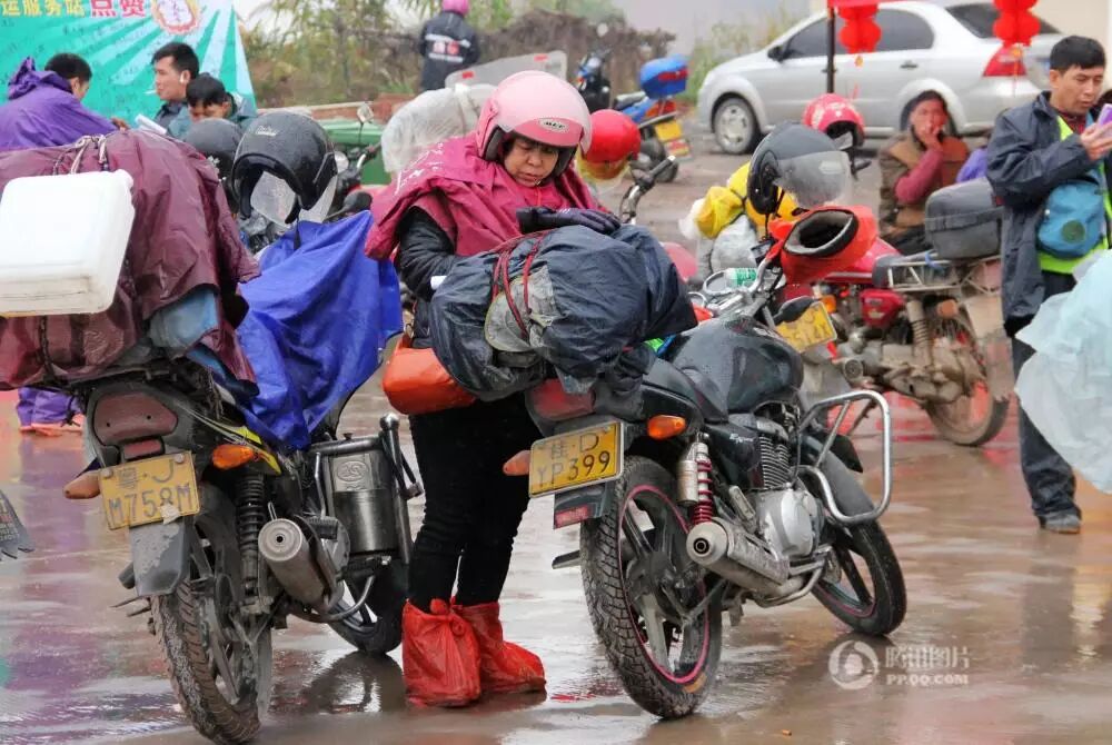 临近春节,却下起了小雨,气温降到12℃左右,夫妇俩人穿上雨衣、雨鞋,戴着厚重的头盔,从广东中山市出发,冒着寒风赶回400多公里远的广西平南县大安镇。