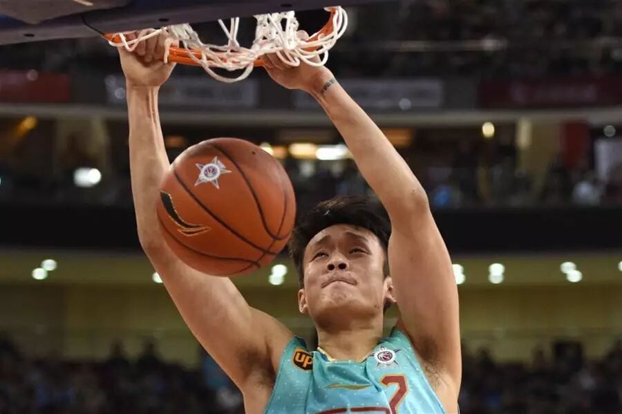 8日,北方明星队球员丁彦雨航在比赛中扣篮得分。当日,2017年中国男子篮球职业联赛(CBA)全明星赛在北京乐视体育生态中心举行,北方队以149比147战胜南方队。