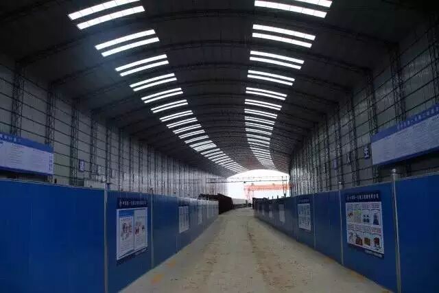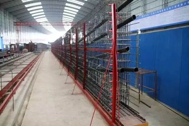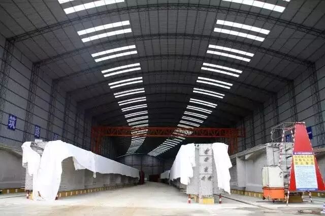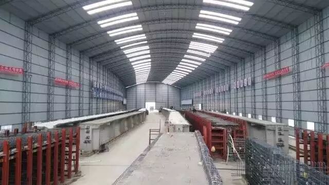 该项目3#预制场长225m,宽36m,占地8100㎡,设置梁场钢筋加工区域338 m2,设置20个制梁台座(含5个预留制梁台座)、2个钢筋加工台座,配备2台80t大龙门吊、2台10t小龙门吊,配备2套中梁模板及1套边梁模板,采用智能张拉和压浆设备,预制场利用彩钢板搭设全封闭大棚,确保施工不受雨、雪天气的影响,日生产40mT梁2片/天。