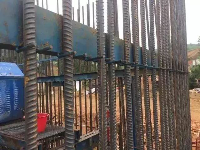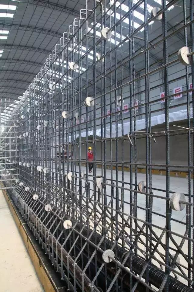 翼板钢筋采用槽钢进行固定,防止翼缘板钢筋在浇筑砼过程中“上翘”,并挂线施工