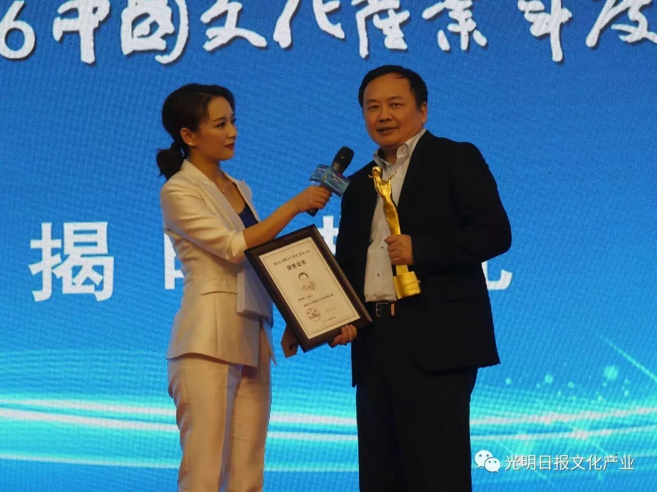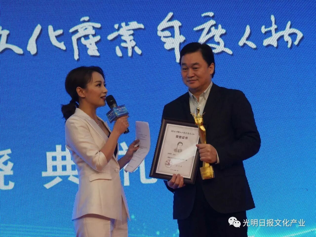 由光明日报社主办的“2016中国文化产业年度人物”揭晓典礼暨第五届中国文化产业主题峰会今天在京举行。经过三个多月以来的推选,十位文化产业界杰出人士获“2016中国文化产业年度人物”殊荣。!他们是(按姓氏拼音排序):