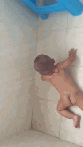 视频中一名男婴躺在冰冷的地上,