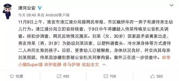 ,11月9日上午分局接网民举报,市区融侨华府一男子有虐待亲生幼儿行为。