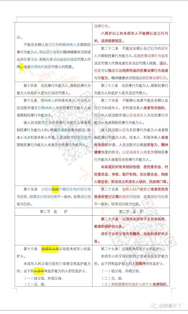 首页 | 美容百科 | 民法总则与民法通则对照表 民法总则与民法通则对照表 2023-04-19 23:50:29 民法总则已于前日通过,将于10月1日施行。观其内容很大程度上是民法通则的修订版。虽然两法将在最近几年并行,但依照新法优于旧法的原则,条文存在冲突的以民法总则的规定为准。为更好的学习新法,特作对照表,供学习使用。文:章樑来源:法眼看天下来源:本文仅代表作者观点供学习参考