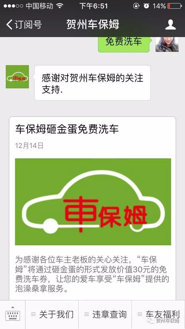 为感谢各位车主老板的关心关注,“车保姆”推出第11期车友福利——免费洗车,每天将通过不同的活动形式发放价值30元的免费洗车券,为各位老板的爱车提供泡澡桑拿服务。