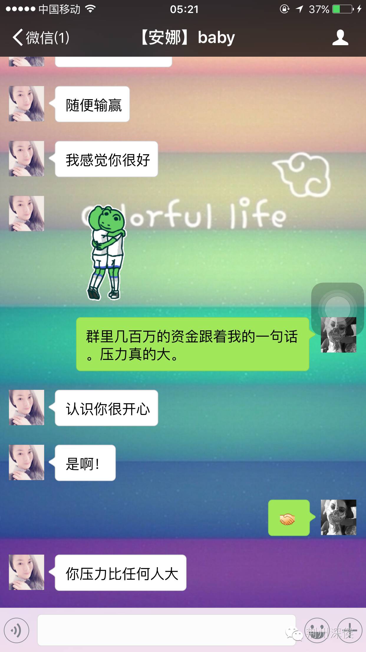 有一个会员粉告诉我,知道我的压力大,每天这么多双眼睛看着我,我很纠结。我的一句话,可能让群里一共超过300万的资金投注到一支球队身上。我说,是的。人越多,入群前他们伤的越深,我就越害怕。害怕加剧他们的伤痛。