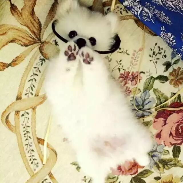 咪仔是一只可爱的白色博美串串,远看像一只小狐狸,近看像一只小白熊,总之就是那种可以把人萌得毫无立场的小狗。咪仔爸咪仔妈夫妻俩就是这样被咪仔迷得七荤八素地,把小咪仔带回了家。