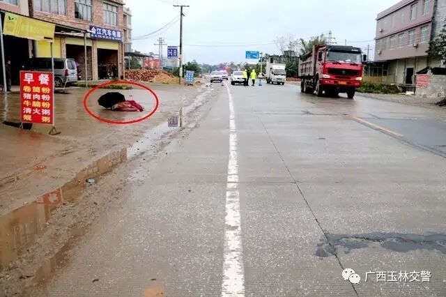 现场道路为呈南北走向,南通往博白县东平街镇,北通往博白县旺茂镇。在道路西侧外躺卧一具女性尸体,尸体被人为用一把绿色雨伞盖着,在道路西侧的非机动车道内遗留有一块灯座玻璃碎片和两块灰色车体装饰面板,且断口比较新鲜。现场勘查民警对周围居民进行调查走访,但未获得现场目击证人。
