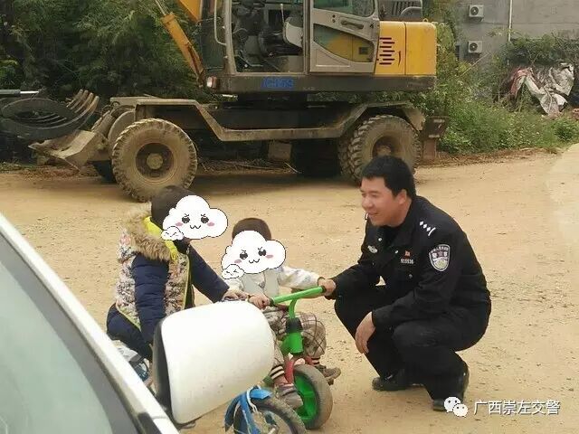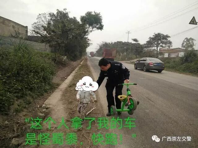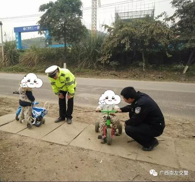 当时路边的车辆不停地从俩小孩身边飞驰而过,也不见孩子的家人在旁边,民警按照往常“捡到”小孩的经验来看,这俩“驾驶员”是跟家人走丢了。