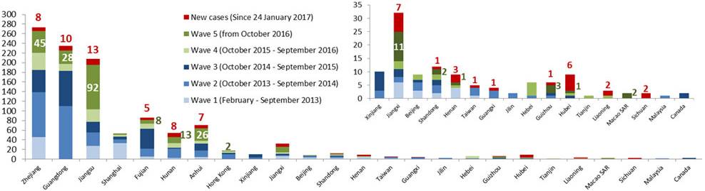 2016年10月起到2017年2月8号第五波H7N9禽流感散发病例共计204例。