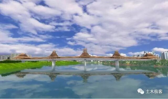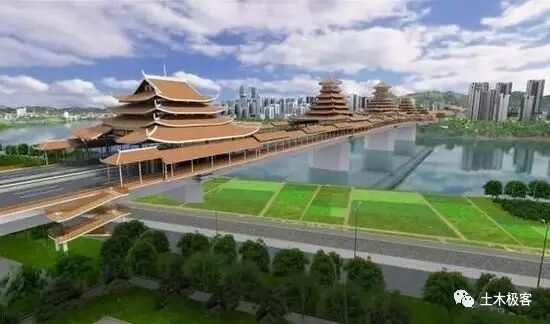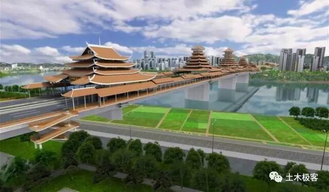 楼亭为鼓楼形象,桥型整体风格优雅,突显民族文化,又体现时代特色。