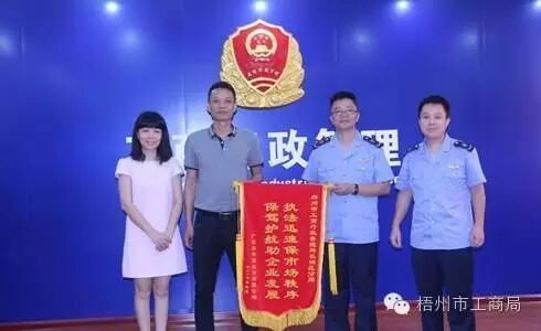 炎炎烈日下,工商执法人员查封涉嫌假冒“田七”牙膏工商部门的快速出击、有效执法,有力地打击了售假者的气焰,保护了企业的合法权益。为了感谢长洲区工商分局执法人员维护厂家权益的打假行为,广西奥奇丽股份有限公司特为该分局赠送了一面锦旗,为长洲工商点赞。