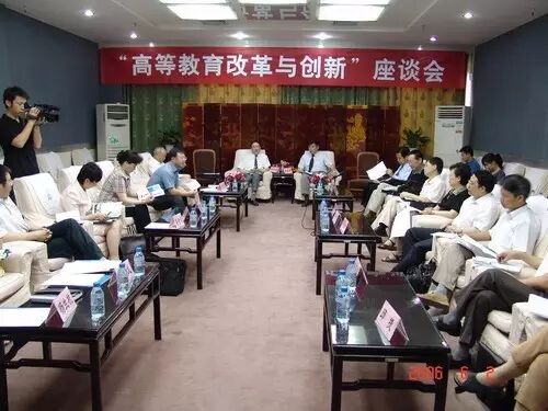 2006年“高等教育改革与创新”问题调研。图为2006年6月,,与西安交通大学师生座谈。