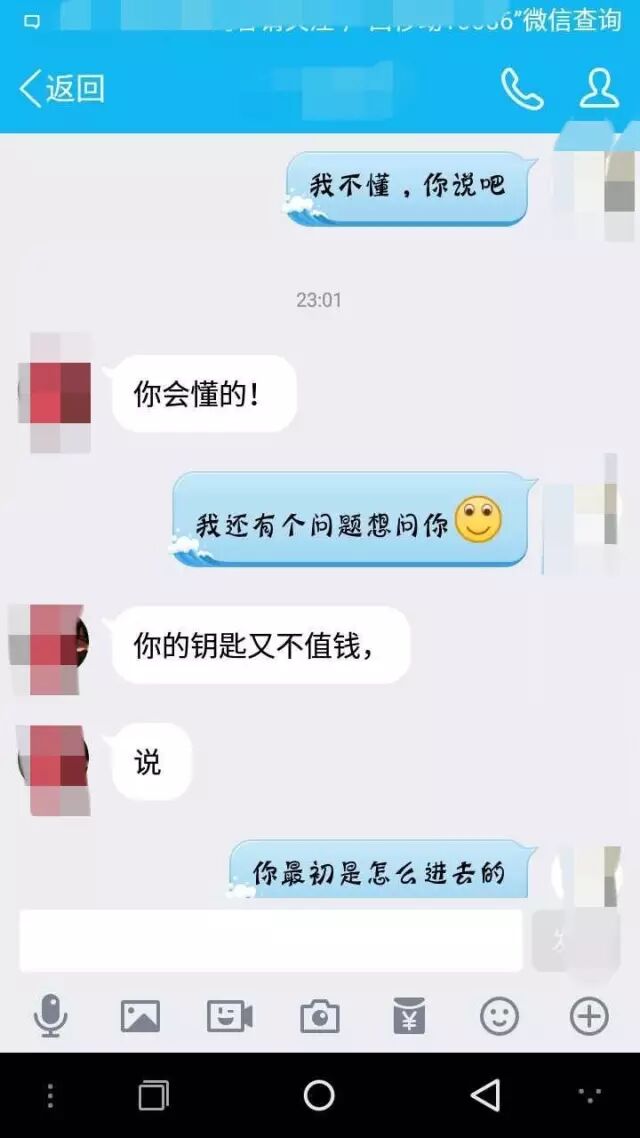 第二天,受害人小韦把房门钥匙换了,并用一把大锁锁住了自己的电动车,还加了嫌疑人留下的QQ,想一探究竟。