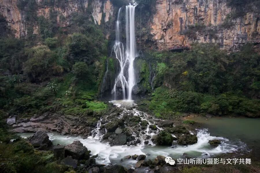 马岭河被称为地球最美丽的伤疤。这个峡谷里的水和空气都很清新。瀑布遇到崖壁就顺崖壁而下,遇到水潭就在水潭来个回旋,遇到石头就散开来越过去,再曲折迂回也一往无前,水边的植物就一直郁郁葱葱地喜悦着。上善若水就是这样吧。