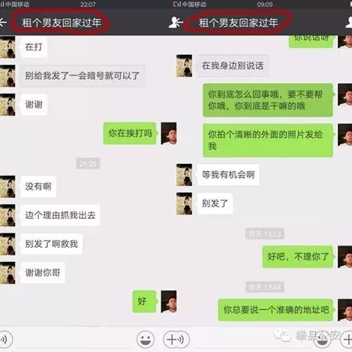 近日,赣县大田乡的赖某在家打开微信摇一摇,突然,一个网名为“租个男友回家过年”的女子主动添加自己为好友,一看头像,还是一个美女哦!赖某心里本来还美滋滋。结果该女子聊天第一句话就说:大哥,救救我!赖某以为是恶作剧,就继续随她聊了下去,聊天中发现越来越不对劲,感觉她真是遇到了困难。